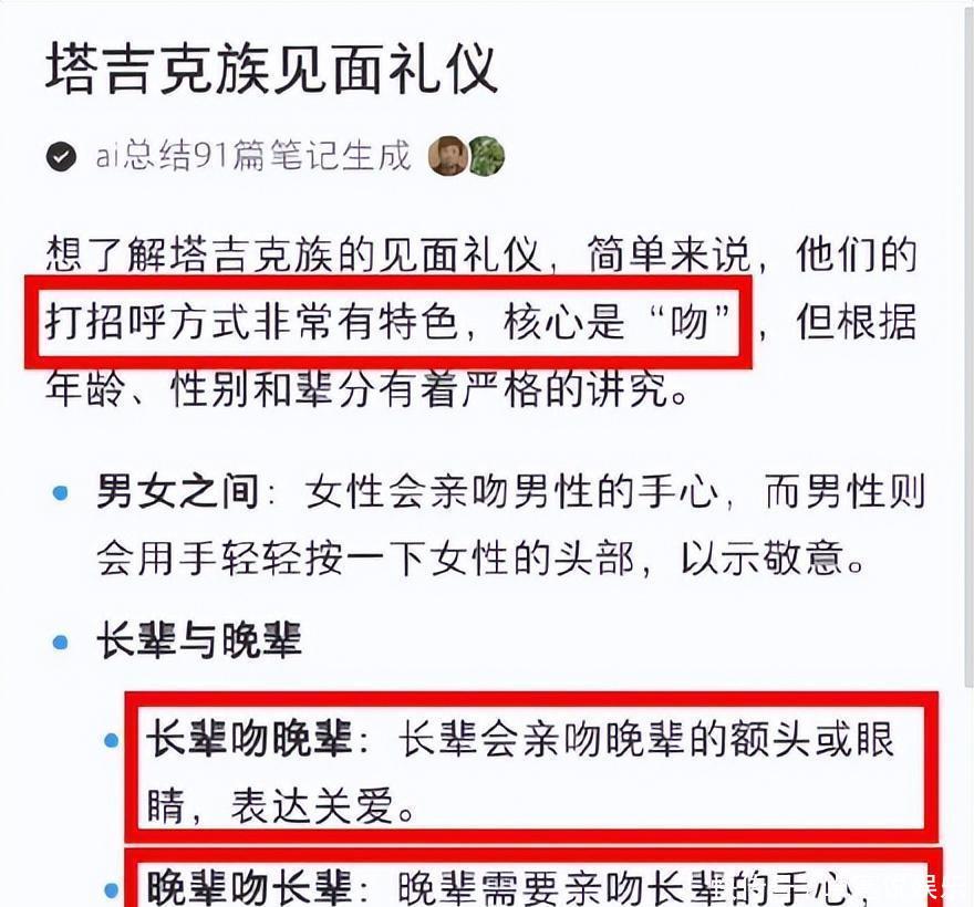 从画面来看,沙溢是亲吻宋雨琦的额头,而且第一次还亲到了头饰上。多位网友也科普了这是塔克吉族的见面礼,称长辈确实会吻晚辈的额头或眼睛表达关爱。照片中宋雨琦也没有回避,乍一看,似乎没有什么问题。